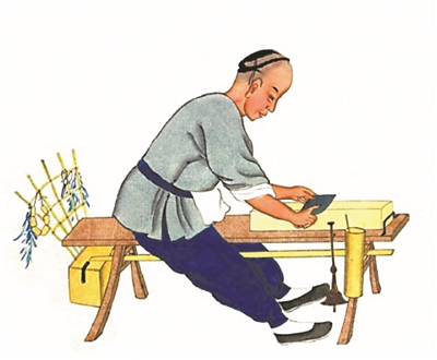 在清代广州工匠中,画匠也很有名。1837年,法国作家老尼克曾这样描述广州画匠林呱:“当我第一次看见他按照中国人的方式拿着画笔,拳头紧握,画笔垂直于画布时,我努力想说服他,告诉他我们的手势更好,更轻松……‘哦!是啊。’他听完我的话,那副耐心和一丝不苟足以奉为楷模……”当时,以林呱为代表的广州画匠绘制出一幅幅令外国人着迷的外销画,堪称当时的“中国明信片”。