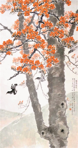 陈树人的作品清微淡远、简洁清新。他擅长诗文,常以诗入画,营造意境,抒发情怀。他创作了大量以讴歌自然美为主旨的山水画、花鸟画。红棉是陈树人最喜爱的表现母题。陈树人赋诗礼赞它“高标翘出东岭松,劲节远超南涧竹。忽烧万炬烛天红,造物谁不惊天公。”