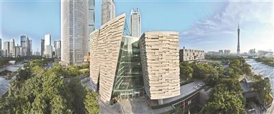 蓝天白云下的广州图书馆,犹如巨型书卷,邀人阅读。