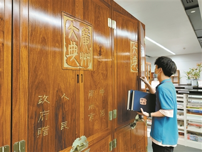 广州图书馆的工作人员在整理书籍。