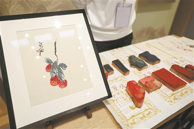 “今天我们带来的是非常具有岭南特色的荔枝图样和整套刻版,希望大家可以对荣宝斋木版水印有更多的了解。”展区里,“荣宝斋”品牌为观众展示的是国家级非遗代表性项目“木版水印技艺”制作过程,观众可以参与体验制作。现场工作人员告诉记者,这一传统技艺不同于现代印刷技术中用各种色彩的“油墨”印刷,而是经过“勾描”“刻版”“印刷”再对照原作由浅入深依次叠印,通过三个步骤共同印制而成,“希望能让艺术走进大众生活,让观众近距离感受传统民族文化瑰宝的无穷魅力”。