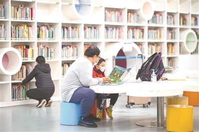 在广州图书馆亲子绘本阅读馆,孩子们在家长的陪同下阅读绘本