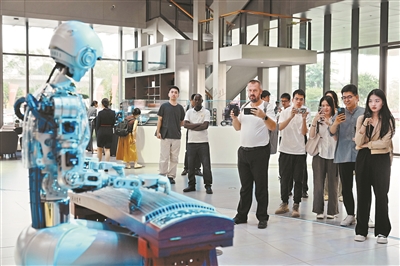 下一站,参访团来到广汽科技馆。获得2022“中国心”十佳发动机和混动系统称号的“钜浪混动”;创造了充电5分钟续航超200公里世界纪录的超倍速快充电池;3至5分钟充满一次储氢罐、里程可达800公里的氢燃料电池汽车;搭载了双备份多旋翼飞行系统的国内首款分离式飞行汽车……这个展馆不仅浓缩了广汽集团科技转型的成果,还是观察中国汽车引领全球汽车变革的窗口。