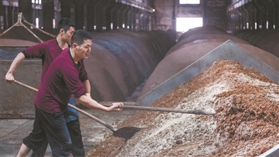 经沈伦华等众多工匠师傅用心封窖的车间在五粮液厂区有很多。当记者走进全世界最大的单体固态发酵车间——五粮液523酿酒车间时,只见1.3万多口封好的窖池,犹如一个个烤好的“大馒头”,蔚为壮观。车间外,人们还穿着羽绒服,冷得直打哆嗦,车间里,蒸气升腾,一派热火朝天的景象:4000多名酿酒工人穿着特制的防静电背心短裤、耐高温拖鞋,挥铲起糟、上甑、蒸馏、摘酒、摊凉……