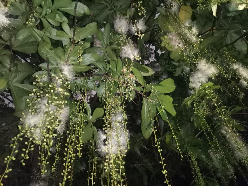 作为珠江公园百花园中极具特色的观赏花卉之一,玉蕊树姿优雅,枝叶婆娑,花香四溢。玉蕊花期很长,可见证一整个盛夏。然而其常于傍晚开放,至凌晨便会飘落,花朵昙花一现,可谓名副其实的月下美人。