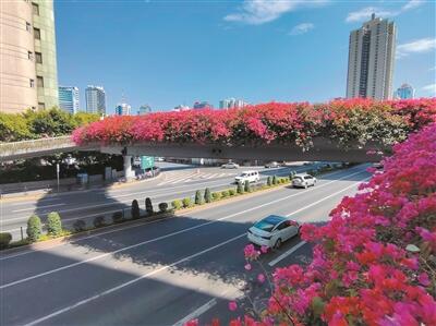 每年进入秋冬季节,“簕杜鹃”都会在羊城开启“比美模式”。据了解,簕杜鹃在广州天桥的立体应用在全国始终处于领先位置。簕杜鹃在广州之所以能基本达到四季常绿、三季开花,和广州市天桥绿化基质的顶尖水平分不开。