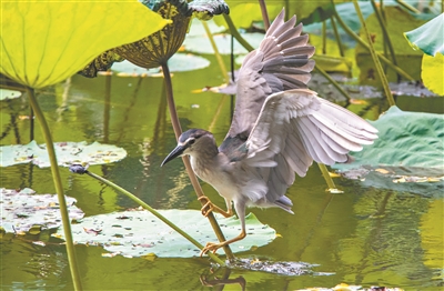 时值盛夏,正是荷花粉白黛绿之际。广州各处公园荷塘里的荷花竞相绽放,美不胜收。在广州市白云区松洲街,螺涌公园里荷花绽放,吸引游人拍摄打卡,该公园面积不大却很有特色,水域面积占了2/3,种有多个品种的观赏荷花。在流花湖公园的荷塘里,荷叶几乎铺满了整个荷塘,朵朵荷花在荷叶的掩映中娇羞盛放,荷塘里成群的鱼儿还吸引了不少栖息在附近鹭岛上的鹭鸟前来觅食。虽然天气炎热,前来赏花拍花的市民游客仍络绎不绝。