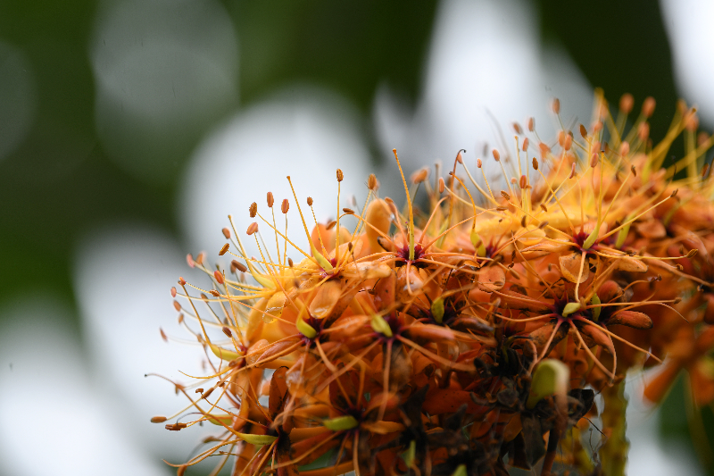 广为人知的是,无忧树在佛教里被称为“圣树”。树叶初生时,深紫色的嫩叶呈下垂状,宛如僧人被雨水打湿的紫色袈裟。盛开的鲜花灿如云锦,可谓金光万道,瑞气千条。佛教认为,这是一种有缘分的树木。