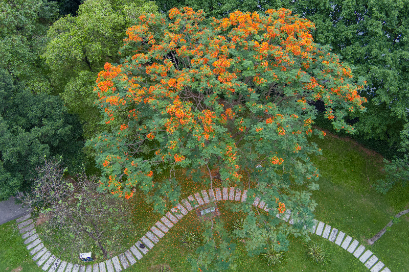 在一些老居民的印象里,20世纪60年代时,5月中旬就能看到凤凰木开花了,而到了20世纪80年代,凤凰木花期比20年前推迟了一个节气左右,要到5月下旬才开花。今年的花期似乎又有所不同。记录凤凰木的花期,再与当年的天气、气候相印证,在观测者眼中是一件非常有趣的事情。