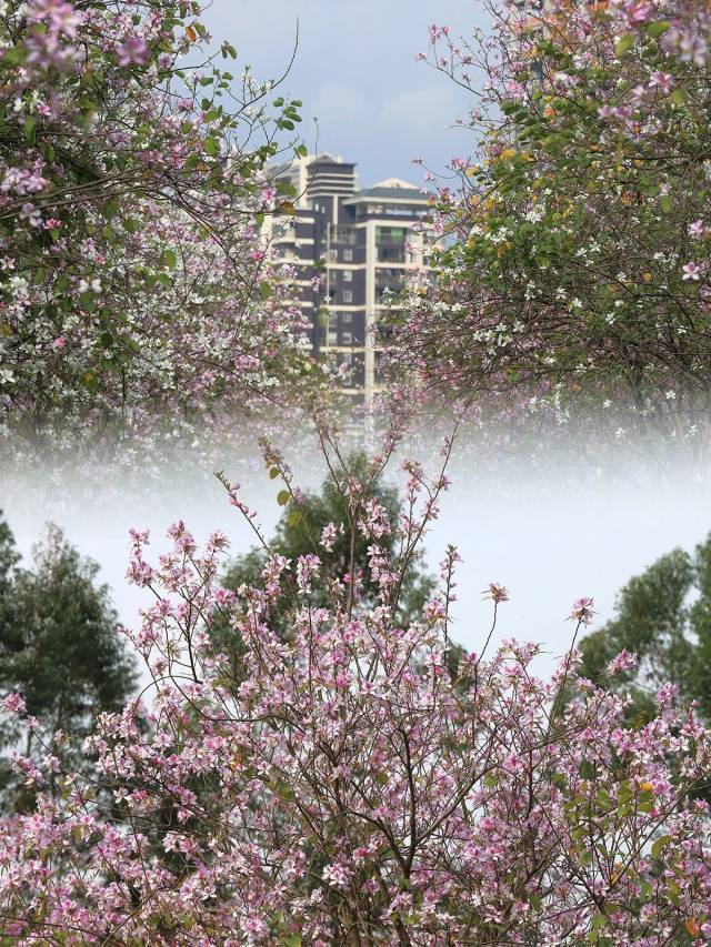 在增城的府佑路、新城大道等城市主干道上,宫粉紫荆迎来了茂盛期。