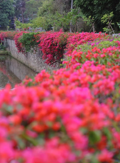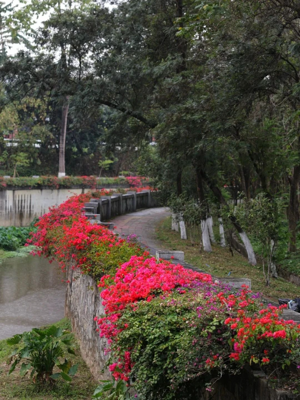 三角梅:竹园餐厅附近河道两旁