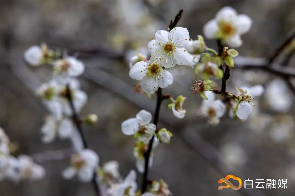 洁白的梅花簇拥在枝头