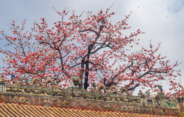 春日时节,广州中山纪念堂内的29株木棉树陆续进入观赏期,蓝瓦、黄墙、红棉、暖阳……古建筑与木棉花交相辉映的画卷徐徐铺展。