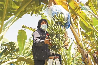 果农正忙着采摘香蕉。