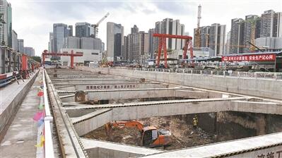 广州加强交通枢纽建设,图为地铁基坑开挖。