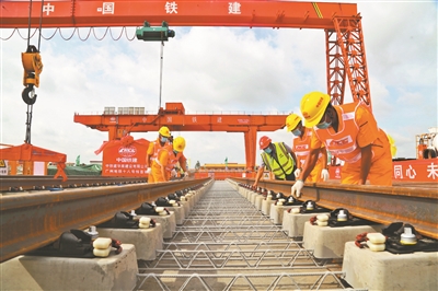 铺轨施工中,采用国内最先进的高铁CPⅢ轨道控制网精测技术,对轨道静态几何尺寸进行全面系统性测量、分析和调整,测量误差提高控制在1毫米级,大大降低列车运行时的“颠簸感”。