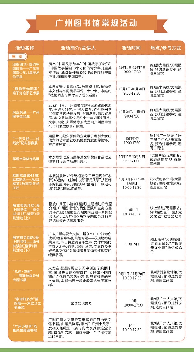 广州图书馆2021年10月活动安排