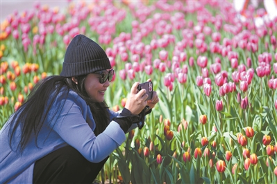 白云山云台花园举办郁金香主题花展,市民欢乐打卡
