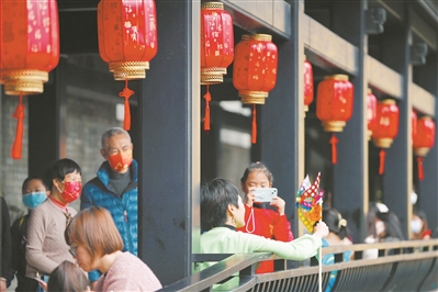 春节期间,西关永庆坊景区内大批市民游客打卡拍照,赏风光。