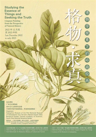 “格物·求真:博物学视角下的岭南绘画”展由广州艺术博物院、孙中山大元帅府纪念馆、中国科学院华南植物园、华南国家植物园联合主办,策展人是陈玉莲。在晚清及民国时期,广州作为重要的对外口岸,不仅是贸易重地,也是中西方文化交流碰撞的场所,在此产生了因商贸兴起的外销画,其中有描绘动植物的博物画。除外销画家外,黄士陵、蔡守、居巢、居廉、伍德彝、容祖椿、高剑父等画家都绘制过写实的带有博物性质的动植物绘画。此外,在当代的科学分类中,博物学的几个领域已衍生成各自独立的专门学科,如植物学、动物学等,博物画也逐渐向科学画转变,本次展览旨在探讨博物学对岭南地区近现代美术史产生的影响,用图像展示中西方视觉文化交流。