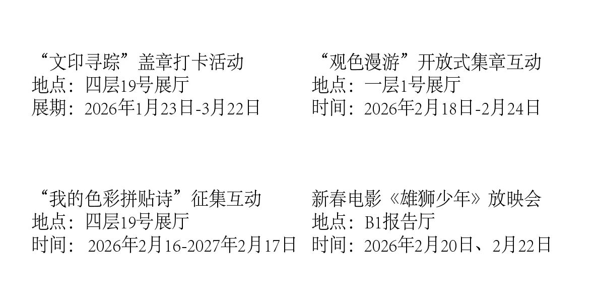 这份精心筹备的“文化菜单”汇集五馆精华,涵盖精品展览、非遗体验、舞台演出、书香品读等多元内容 。“丰盛佳肴”已备齐,下拉清单,挑选心仪之选。
