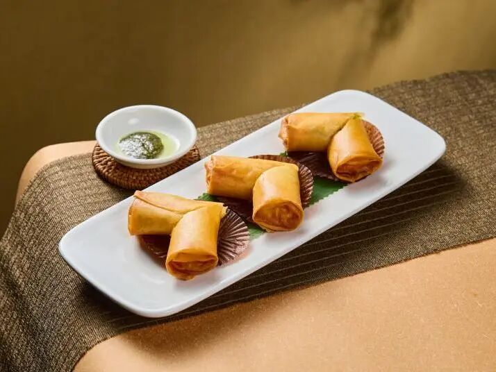 外酥里嫩的黄金春卷,内包软嫩的九肚鱼,炸至金黄酥脆,咬开鱼肉鲜甜多汁,毫无腥味,口感惊艳。