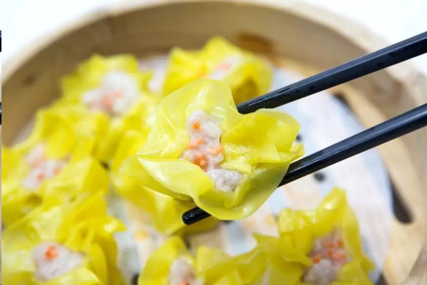 寓意每天笑哈哈。虾饺神似一把优雅展开的扇子,蒸制后,薄如蝉翼、晶莹剔透。