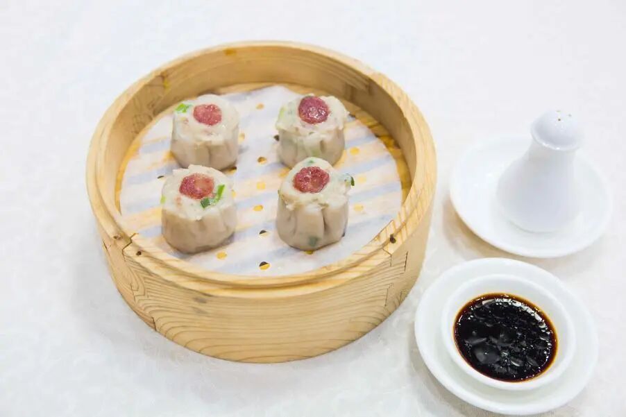 用肉粒馅配比三肥七瘦,再以虾仁粒、香菇粒,经师傅每日手锤。每粒烧麦皇不低于37克,新鲜现蒸,粒粒爽口有肉感。