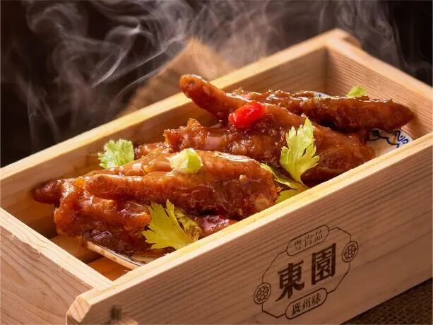 东园传承广州粤菜传统技艺,同时结合新时代消费者的口味和审美,将地道粤式点心重新演绎,冠军香菇烧卖,以杏鲍菇作为烧卖外皮,区别传统,别有一番风味。一盅两件,体现极致的广州地道饮茶文化。