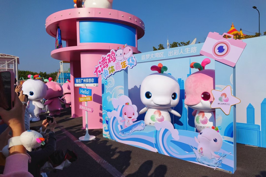 园区内,“大湾鸡”人偶将全天候驻场,通过萌趣表演、合影打卡等形式拉近与市民游客的距离。