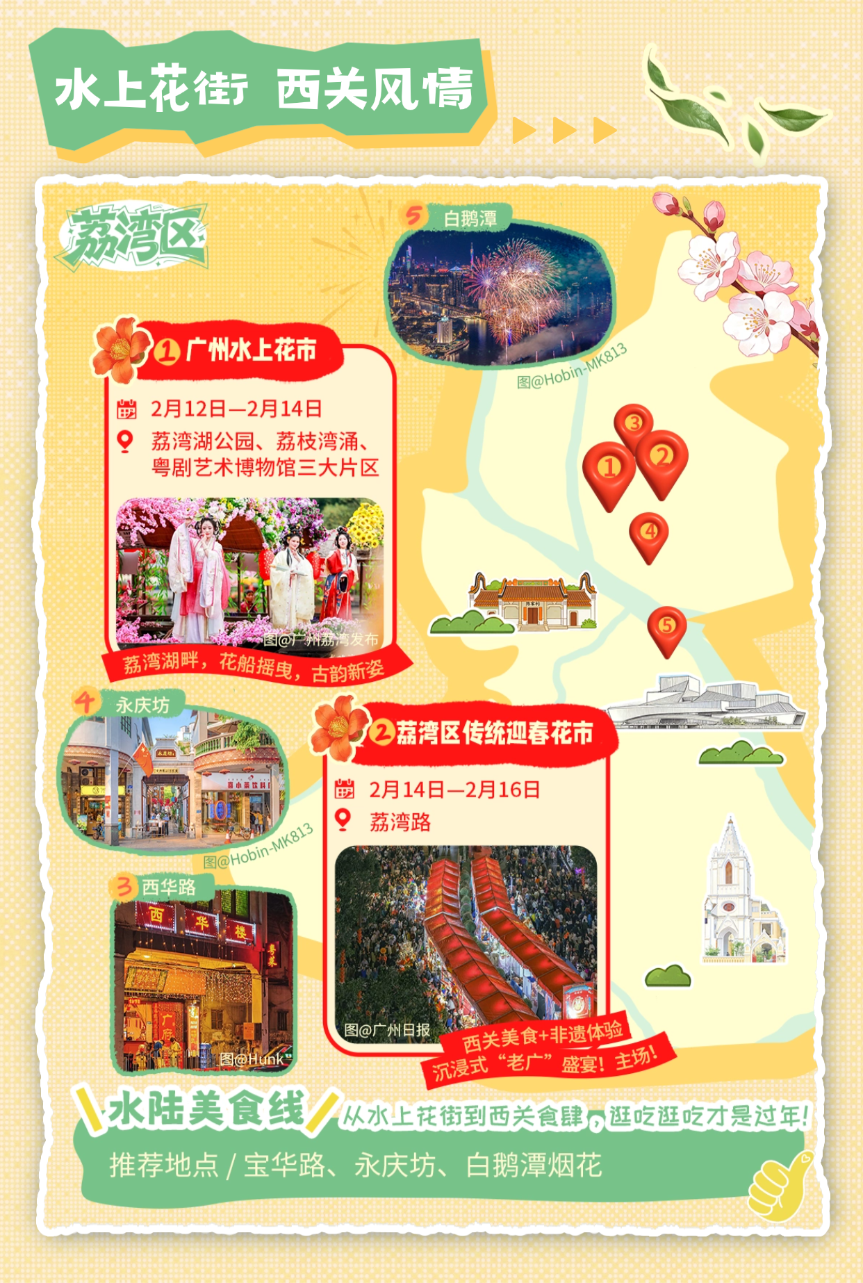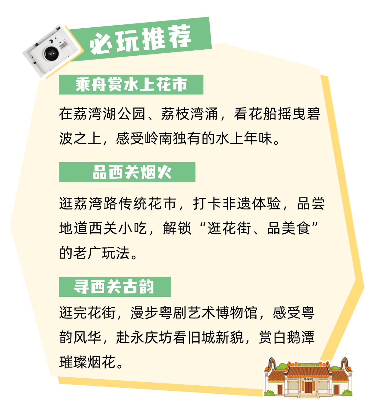 水上花市花船摇曳,传统花市烟火氤氲,串联荔湾湖、荔枝湾涌、西关食肆,将水上风情、非遗文化、西关美食完美融合,沉浸式感受老广最地道的新春盛宴。