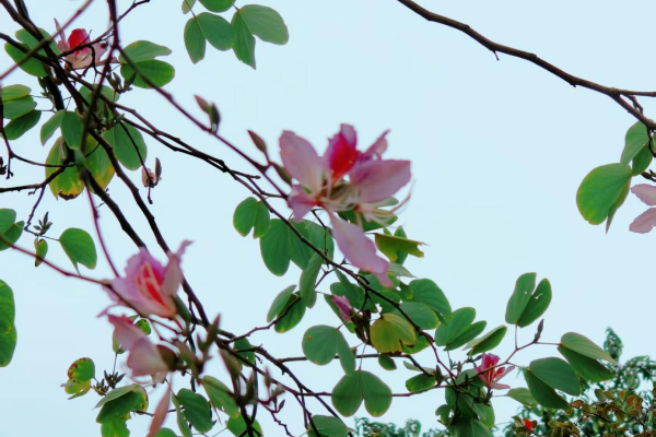 宫粉羊蹄甲:位于九龙泉牌坊、黄河石广场和龙虎谷。