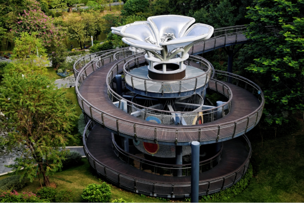 云萝植物园,站在空中木棉道从空中一览植物园,清澈溪流旁绣球、百合与虞美人随风摇曳,宛若春日秘境,治愈感拉满!