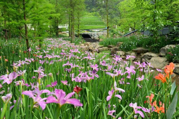 云溪植物园从望溪台到虹桥,藏着一条能真正抚慰身心的溪谷芳香疗愈径,绣球与虞美人相映,宛如油画,杉林成荫,溪水潺潺。