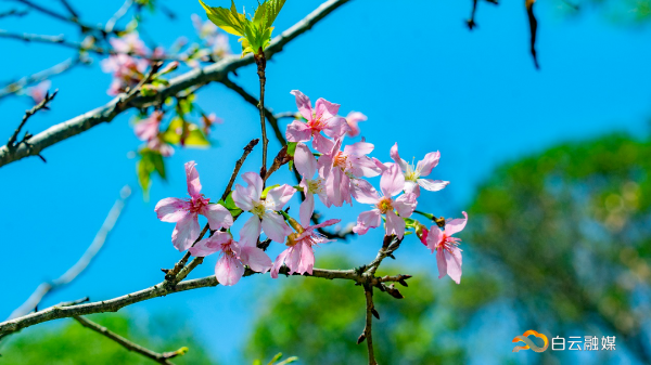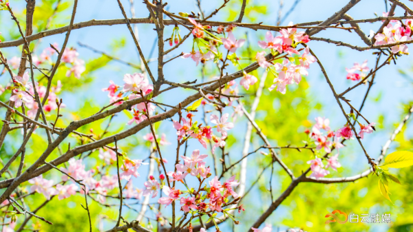200余株广州樱竞相绽放,粉红花蕊点缀枝头,粉白相间的花海绵延成片。
