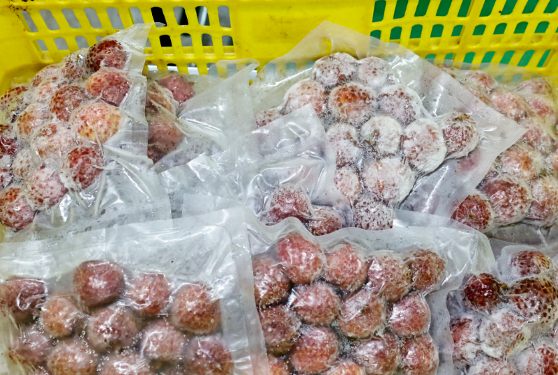 冻眠技术,即荔枝超低温冷冻锁鲜技术。广东省农业科学院蚕业与农产品加工研究所副研究员程丽娜介绍,其主要原理是使果肉细胞内水分形成微小冰晶,避免刺破细胞膜,保持组织结构完整,从而直接锁住果实的原始色泽与风味。这项技术由广州市从化区与广东省农业科学院、华南农业大学合作攻关,打破荔枝销售“只争朝夕”的限制,填补秋冬季荔枝市场空白,带动果农每吨增收约2500元,并实现荔枝“全年卖、卖全球”。