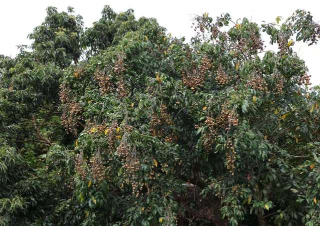 “我们的‘晚’可是金字招牌!”果园主人张伯一边帮游客采摘,一边骄傲地介绍。他谈到,温泉龙眼凭借独特晚熟特性,巧妙避开七月高峰,选择在八月下旬至九月初从容登场,赢得价格优势。