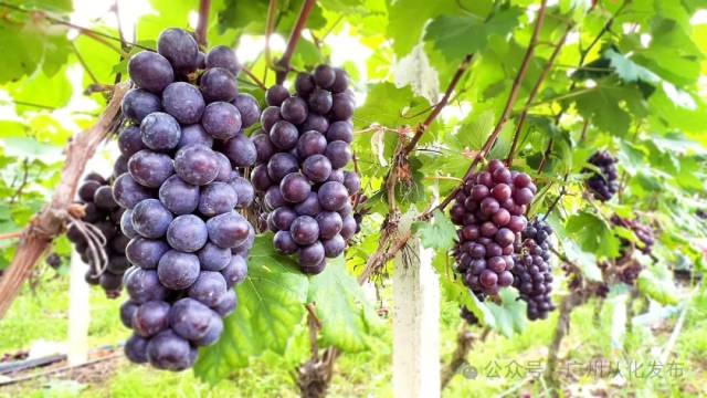 在城郊街城康村的葡萄园,青色的、深紫色的玫瑰香葡萄挂满藤枝,一派丰收的景象。一串串晶莹剔透的葡萄在绿叶间若隐若现,颗颗饱满圆润,散发出淡淡的玫瑰花香,可采摘至12月。