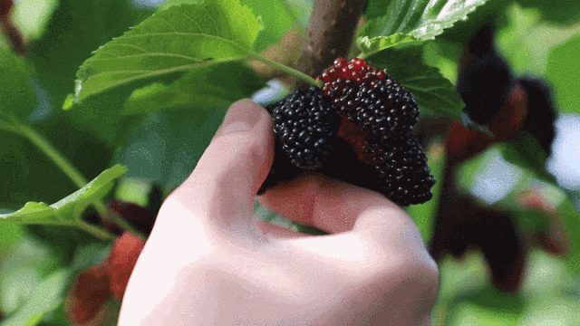 良口创鲜果桑园位于良平村,桑葚从9月份就进入了成熟采摘期,一直可采摘到次年5月。从开始熟的粉红色果桑,到半熟的红黑相间的果桑,再到完全熟透的黑得发紫的果桑,一条枝条上的果桑渐次成熟,显得多姿多彩。桑葚全身都是宝,除了直接食用,还能做成桑葚果酱、桑葚干、桑葚酒、桑果山楂等一系列深加工产品。