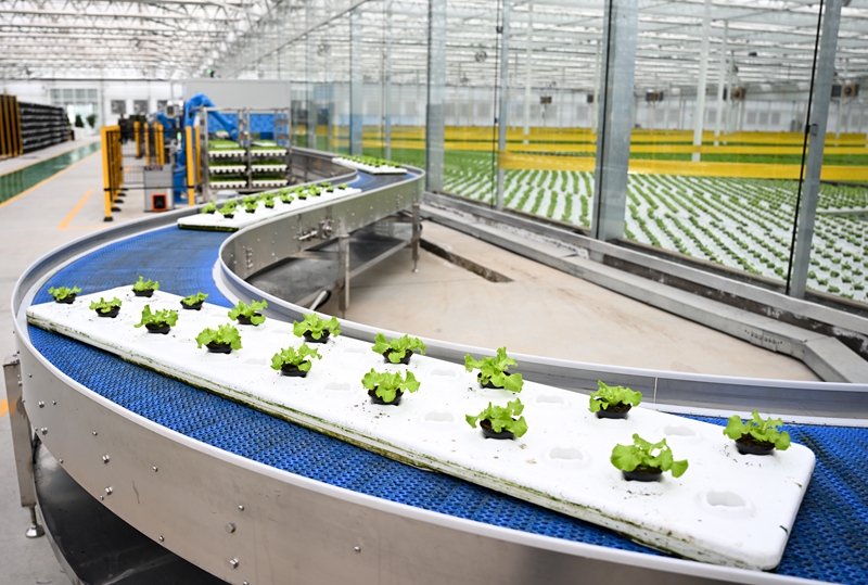 2024年12月12日在内蒙古鄂尔多斯市达拉特旗内蒙古现代数字农业科技产业园拍摄的生菜苗。