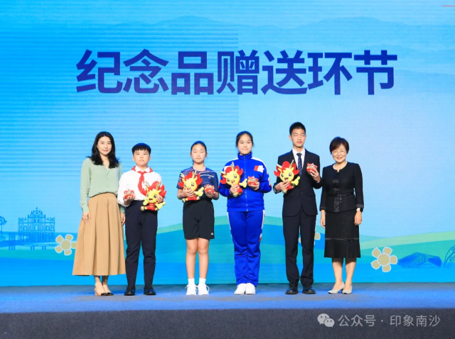 现场,南沙区文化广电旅游体育局局长鲁辉与奥运跳水冠军、南沙区英东教育培训中心理事郭晶晶共同向粤港澳三地的学生代表赠送了精心准备的纪念品,表达了南沙对各位来宾的热烈欢迎。