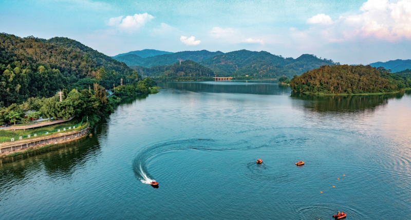 和龙水库属于饮用水水源二级保护区,曾因管理权与经营权分离而治理维艰。通过系统整治周边养殖、餐饮与工业污染,收回水库经营权和推行水库运营标准化建设,如今其水质跃升至Ⅲ类,防洪能力提升至百年一遇。3.7公里的环库景观廊道如诗如画,“天光云影”等十大景观节点熠熠生辉,串联白山村和沙田村形成“白云深处·诗画帽峰”新乡村示范带,文旅融合发展势头强劲,成功实现了从单一水利工程向“花园式”绿色空间的转型,为功能型水库综合治理、运营管理与开发利用提供了白云经验。