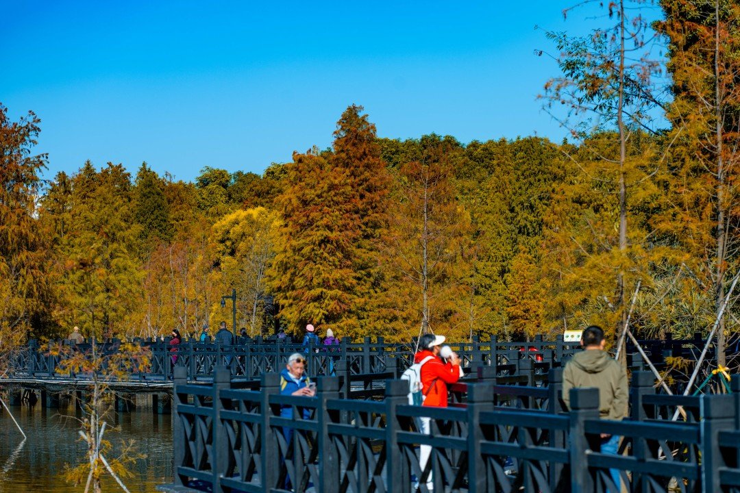 目前,海珠湿地已逐渐进入落羽杉最佳观赏阶段,这份冬日独有的“美拉德”色调正等待市民游客前来打卡,在湖光林影间放松身心,感受自然之美。