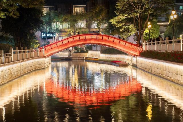 去年中秋期间,荔枝湾涌的“月亮桥”在社交媒体上强势“出圈”,成为热门网红打卡景点。而这座在涌水的倒映下形成一个正圆的“月亮桥”实际上是荔枝湾涌“十二桥”之一,正式的名字是叠月桥。荔枝湾涌从逢源路起,至永庆坊止,水面共有龙津桥、德兴桥、大观桥、至善桥、柔济桥、时敏桥、银钩桥、羽扇桥、多宝桥、抱月桥、叠月桥、虹月桥共十二座不同时期风格各异的桥梁。其中,年代久远的时敏桥建于清光绪年间,是广州历史建筑。
