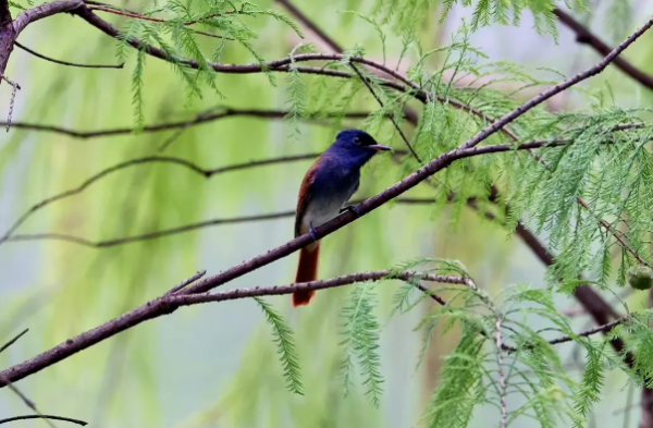 尽管初秋的广州多雨且潮湿,仍有迁徙候鸟如期而至,这其中与寿带相遇的曼妙情绪大概只有观鸟人懂得了,寿带的到来给众多喜欢拍鸟的影友们带来了许多开心和快乐。8月24日下午,市民在麓湖公园南岸湖边看到一只寿带在鸡蛋花树上冲向湖面,可惜镜头不够快,没有及时抓拍到寿带冲下湖水精彩瞬间,只留下寿带在落羽杉和鸡蛋花树上的倩影。