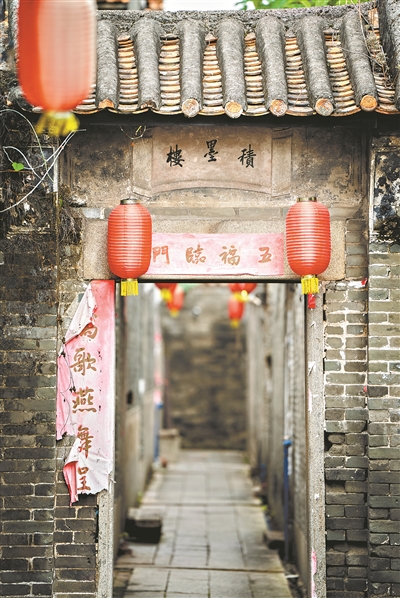 黄谷诒与儿子住在积墨楼的八间大宅中。大宅颇为气派,连青麻石都有讲究。“每间宅子的青麻石高低不同,寓意长幼有序,父亲所住房舍的青麻石石阶最高,有2.2米。”塱头村村民黄泽贤说。