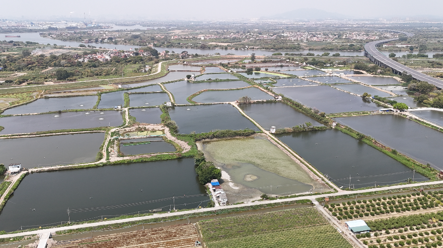 无人机对水产养殖基地进行巡查。