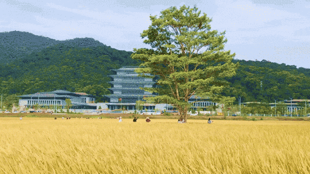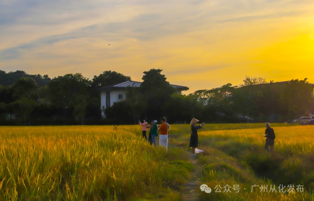 “很漂亮,在版本馆刚落成时我来过一次,那时还没有这片田,现在再次到来,看到这金黄金黄的稻田,满是丰收的景象。特别是拿无人机航拍时,金黄的画卷与版本馆、青山绿水等重叠呼应,尽显从化环境的优越。”市民潘叔说道。