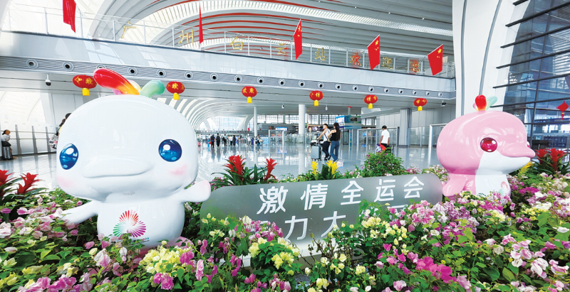 在广州白云站,十五运会的元素随处可见。