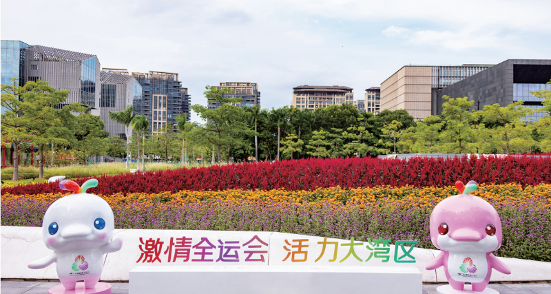 在广州体育馆旁边的体育公园,“喜洋洋”和“乐融融”吉祥物雕塑憨态可掬。白云湖大道沿线布置了四组以乒乓球、篮球、足球、羽毛球为主题的吉祥物雕塑,通过艺术的语言,将“激情全运会 活力大湾区”的赛会主题融入公共空间。